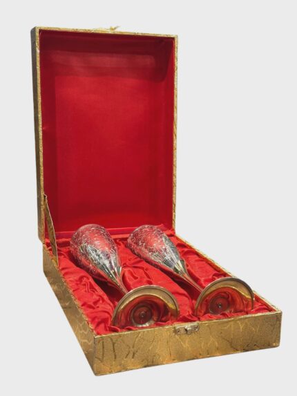Engraved Brass Wine Glass Set, Gold & Silver Chrome Champagne Flutes, Luxury Barware