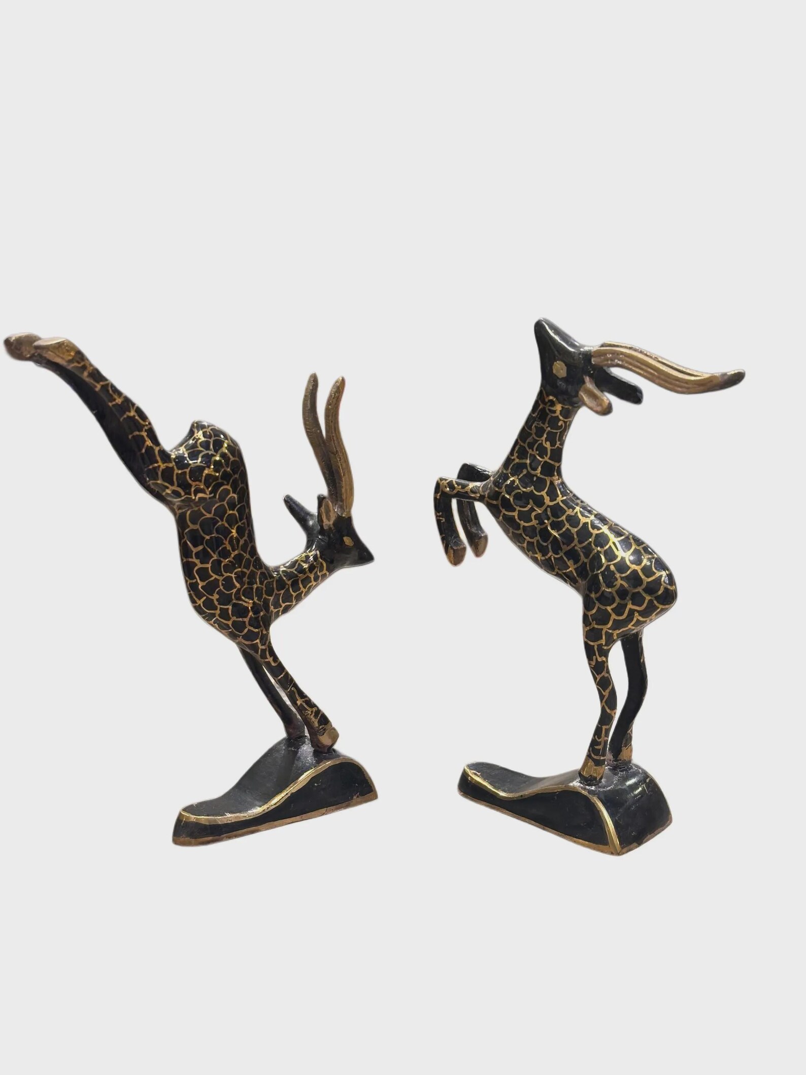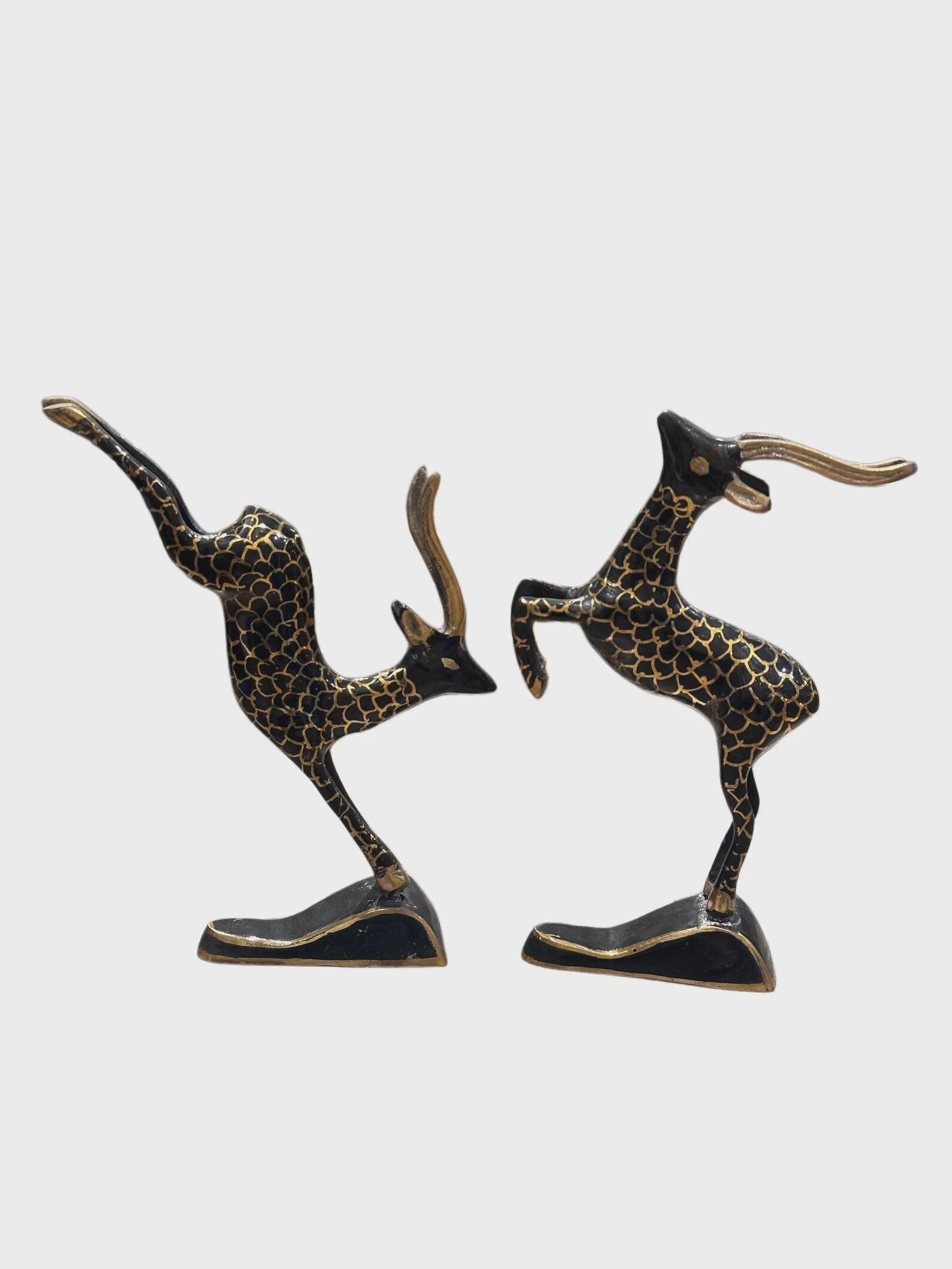• Material: Solid brass with an antique black and gold finish, giving a rich, artistic look that highlights the handcrafted texture and pattern on each deer.