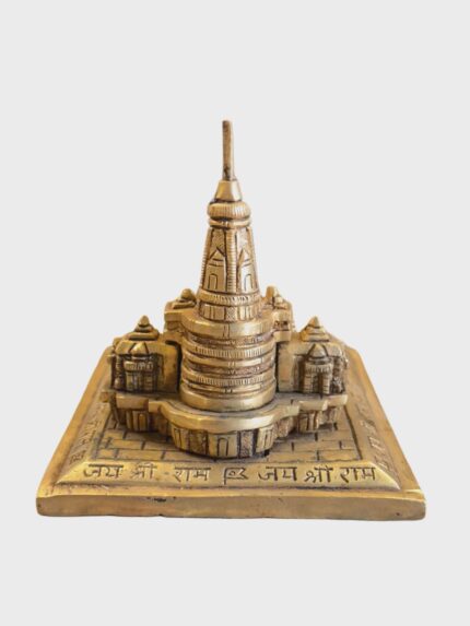 Beautifully handcrafted replica of Shri Ram Mandir Ayodhya made of Panchdhatu. Color:                             Golden Brand:                             Panchdhatu Material:                        Copper, Zinc, Iron, Silver, Gold Collection Name:       Devotion Item Dimensions:     LxWxH 10 cm (Length) × 8 cm (Width) × 9 cm (Height) Weight:                          1 kg Net Quantity:              1 count Number of Items:     1
