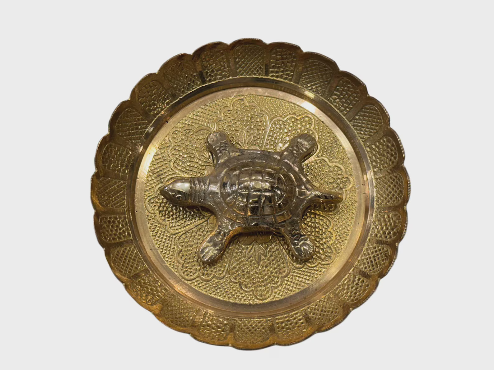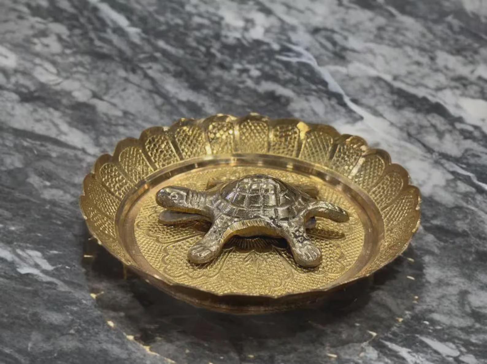 • Design: Intricately cast tortoise with a numerology square engraved on the back, placed on an ornamental round plate with lotus-style patterning to symbolise growth, protection, and balanced energies.