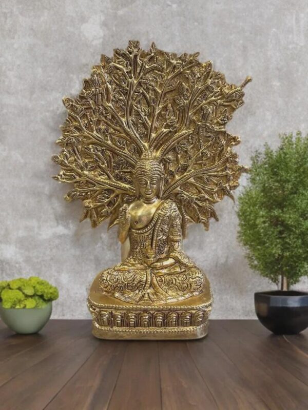 • Bring serenity and spiritual elegance into your space with this handcrafted Panchdhatu Buddha statue seated under the sacred Bodhi Tree. Symbolizing enlightenment, peace, and inner balance, this intricately detailed idol reflects traditional Indian craftsmanship with a rich antique finish.