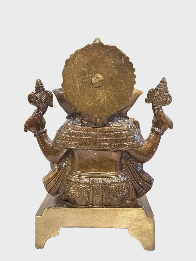 Panchdhatu Lord Ganesha Sitting on Carved Singhasan