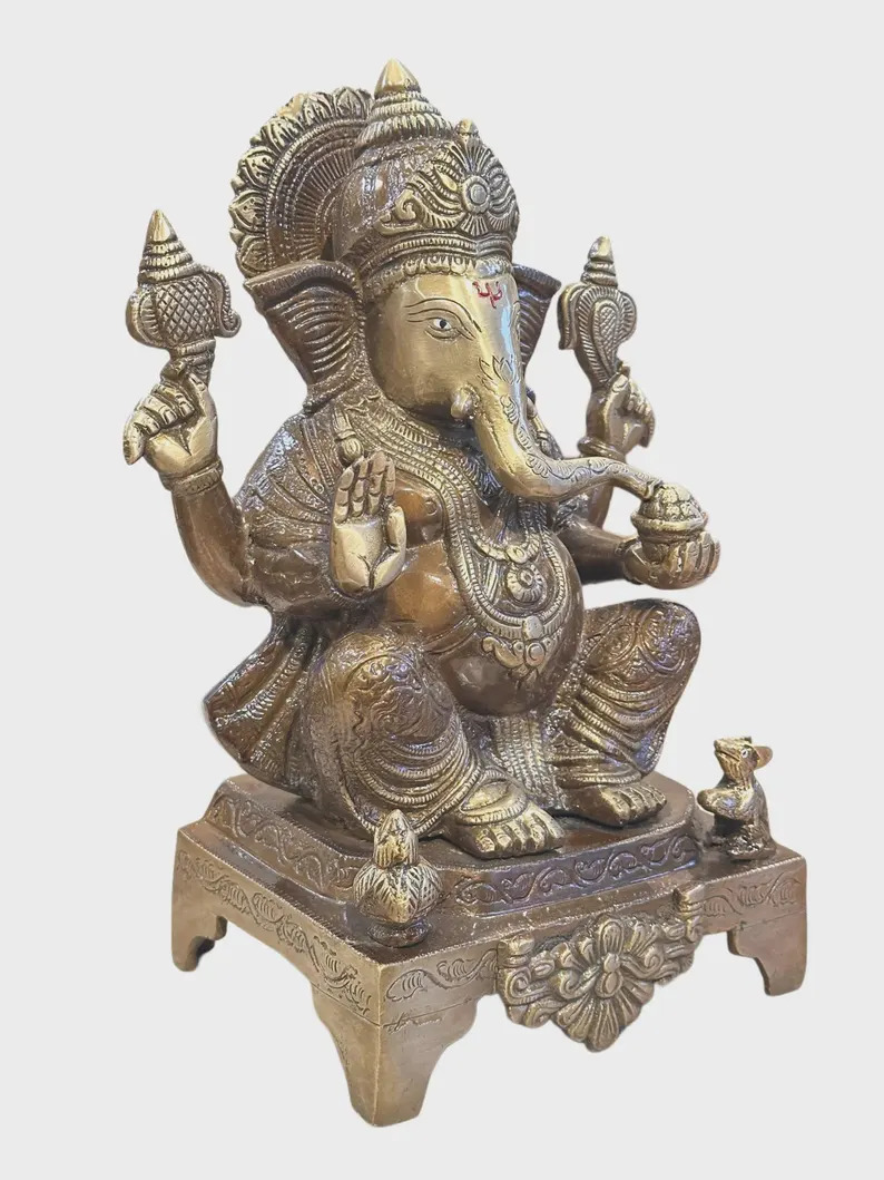 • This handcrafted Ashtadhatu Ganesh statue represents wisdom, prosperity, and the remover of obstacles.