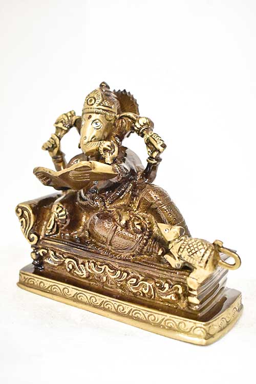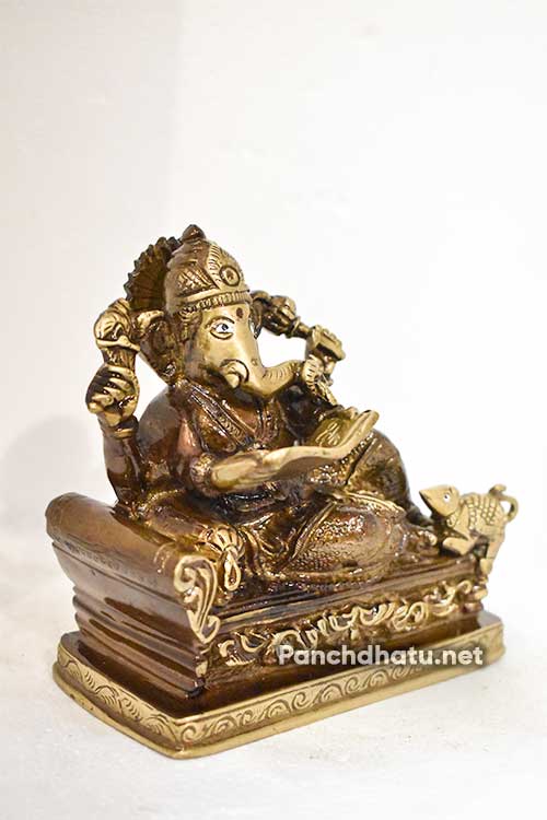 Panchdhatu Lord Ganesha Sitting on Carved Singhasan