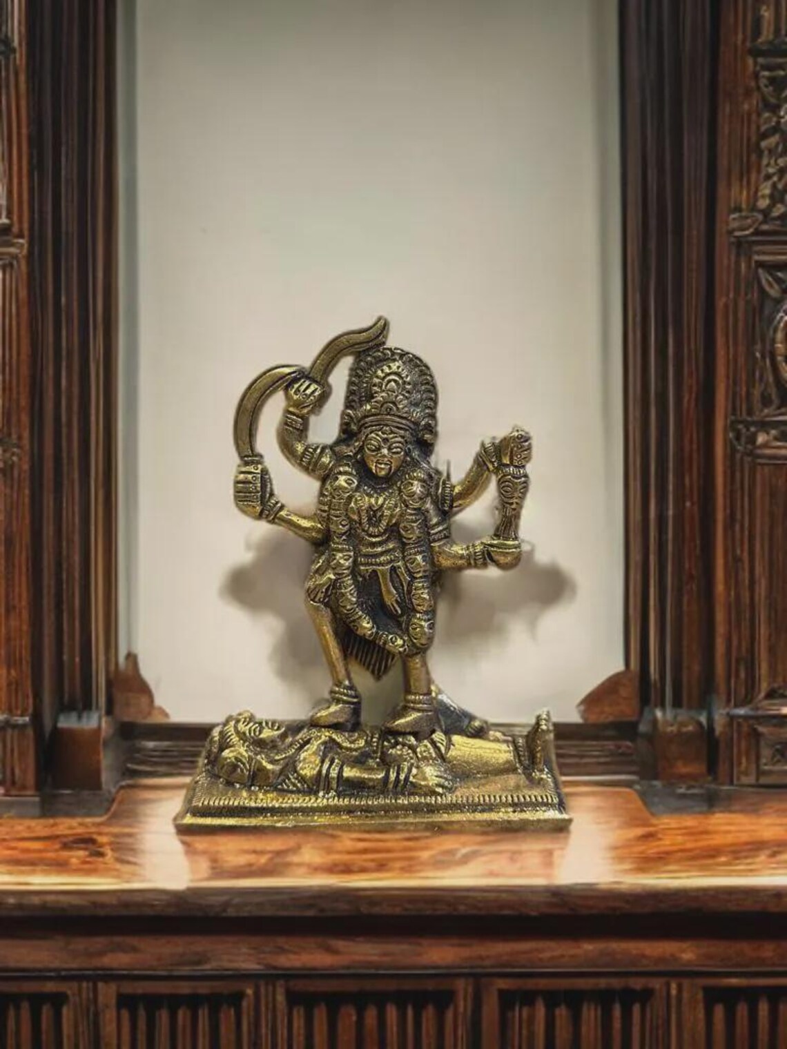 Invoke divine strength and protection with this Panchdhatu Kali Mata statue. Crafted with detailed precision and antique finish, this powerful goddess idol symbolizes transformation, courage, and spiritual energy, perfect for your home temple, office desk, meditation corner, or as a meaningful spiritual gift for loved ones.