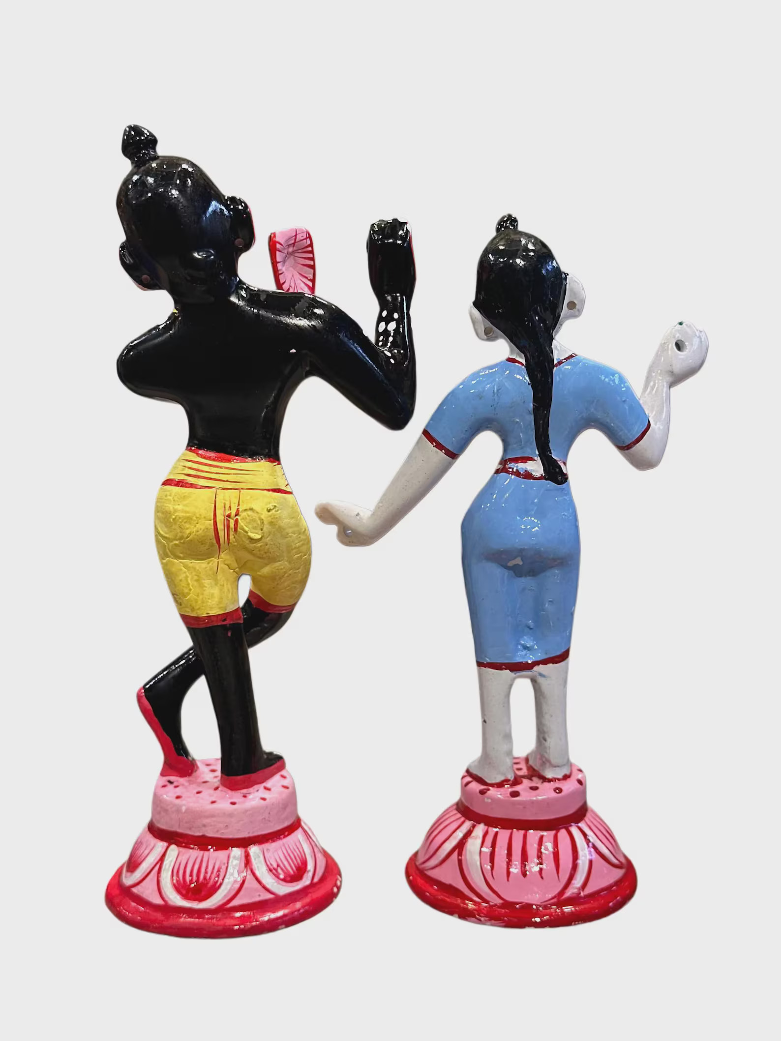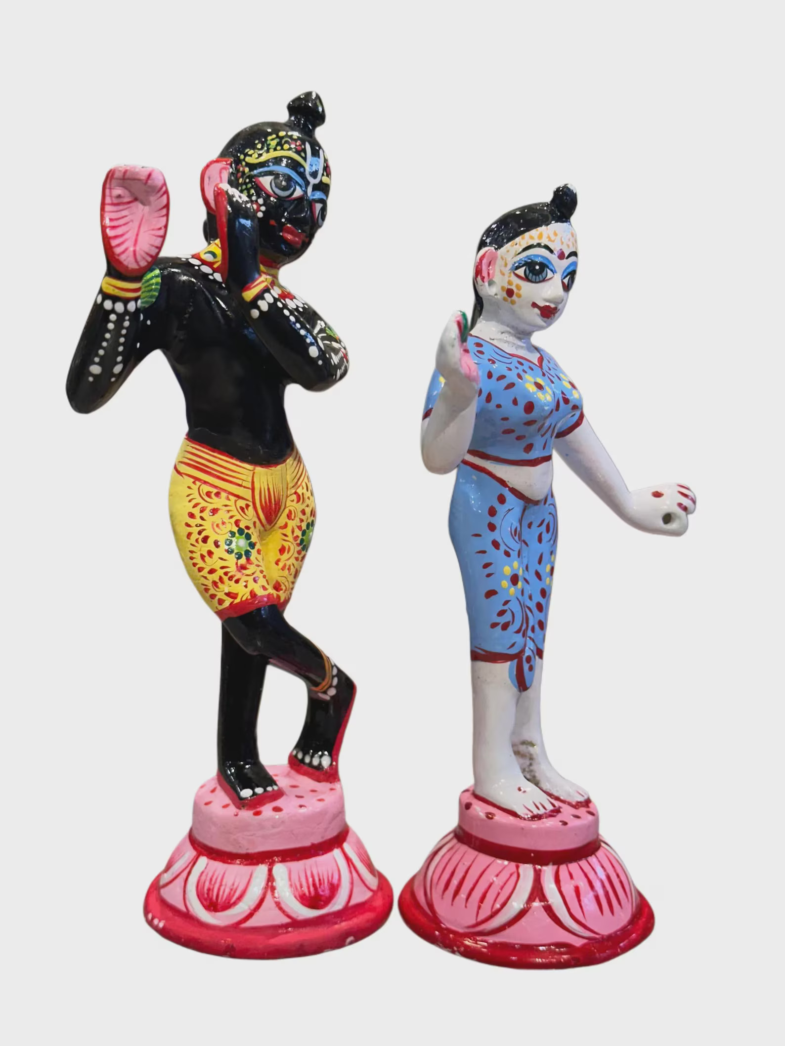 Celebrate eternal love and devotion with this handpainted Radha Krishna Panchdhatu statue. Crafted with intricate detailing and vibrant traditional colors, this idol reflects divine grace and spiritual harmony. Perfect for home temple, living room decor, or gifting during weddings and religious festivals. A timeless devotional art piece symbolizing love and devotion.